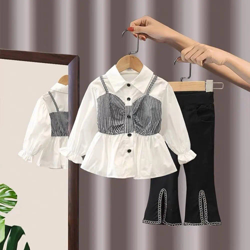 ست شومیز شلوار ساسبندی دخترانه مدل آسو برند شیکسون