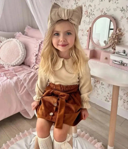 ست ۳ تکه کت دامن و کلاه دخترانه مخمل سوئیت مدل آوا برند شیکسون