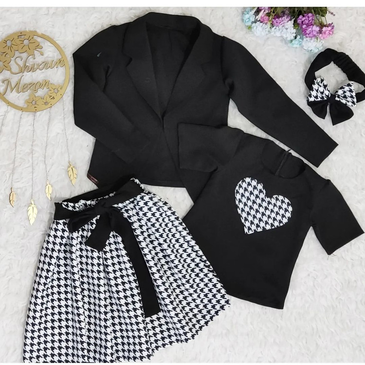 🔴 نام محصول : ست 4 تکه کت دامن دخترانه مدل مهشاد برند شیکسون