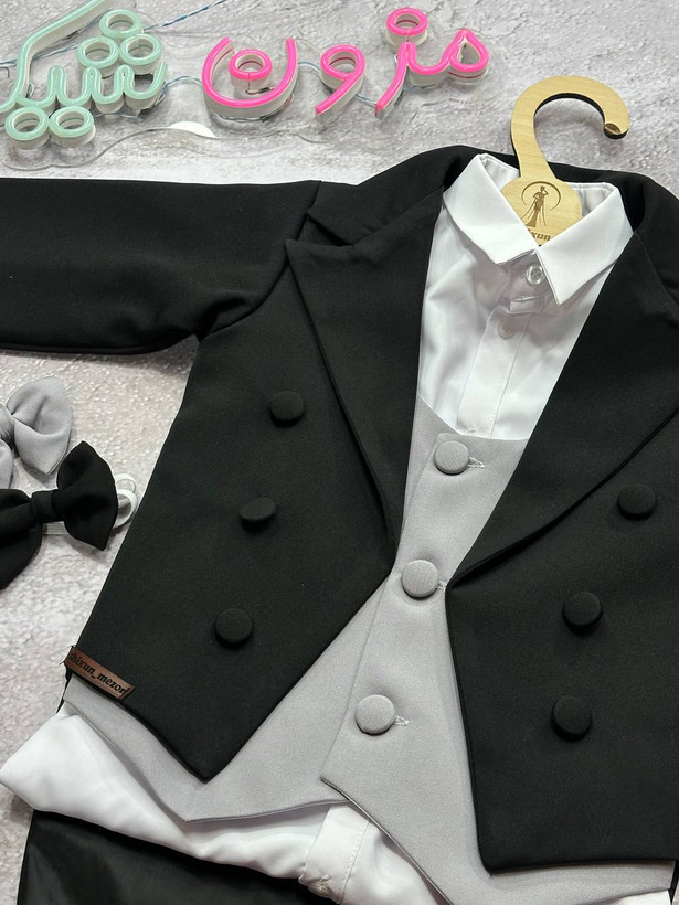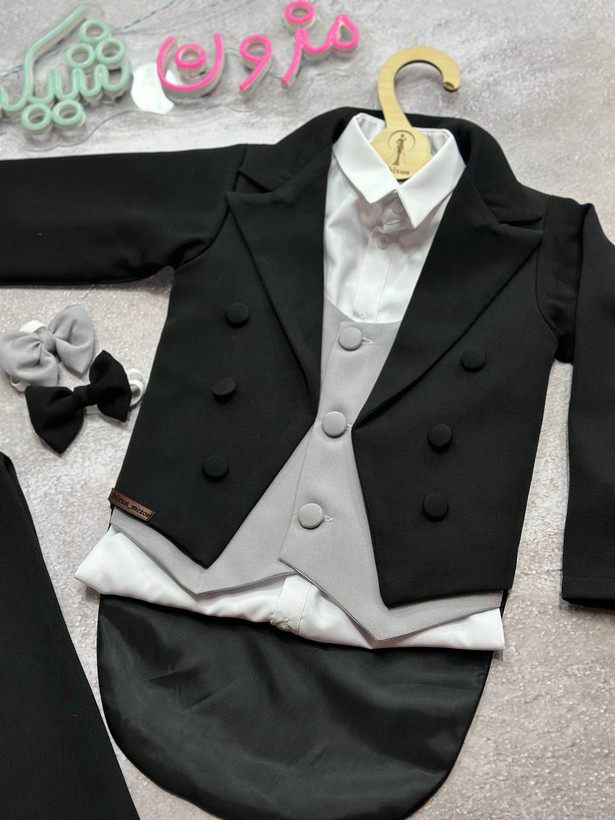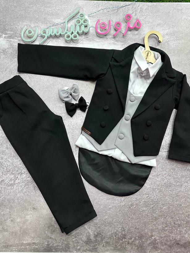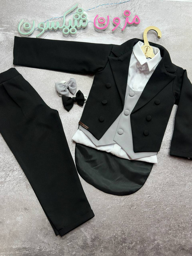 ست کتشلوار ۵ تکه دنباله بلند پسرانه مدل هیربد برند شیکسون