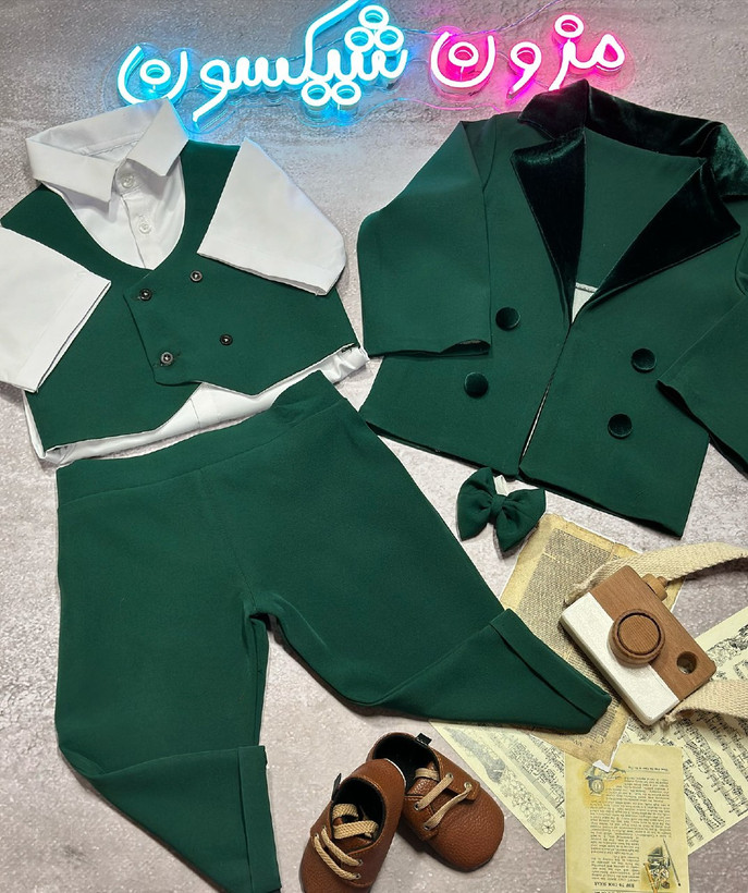 کت شلوار پسرانه ۵ تکه مدل یقه مخمل برند شیکسون