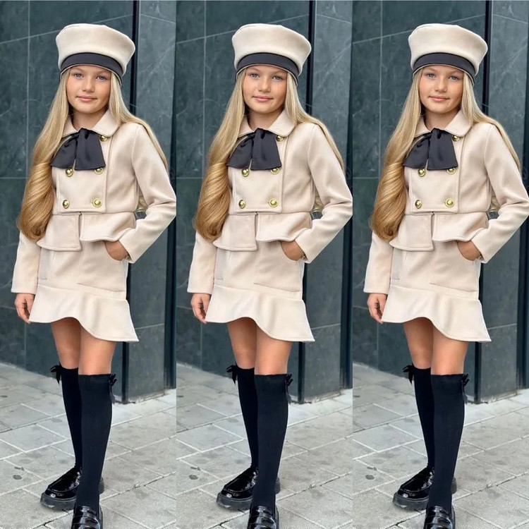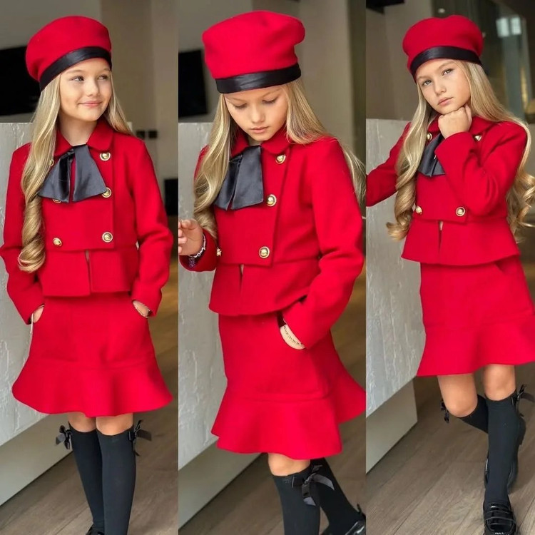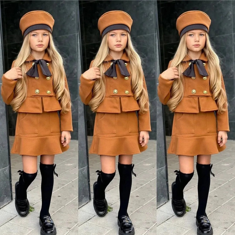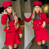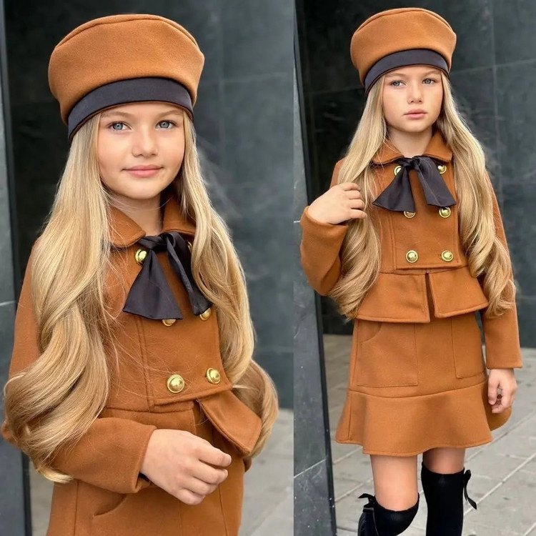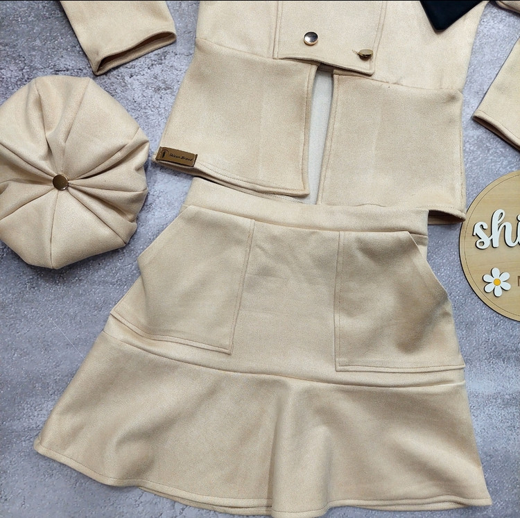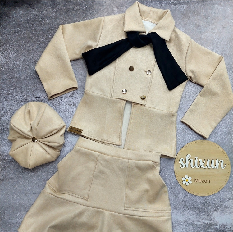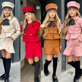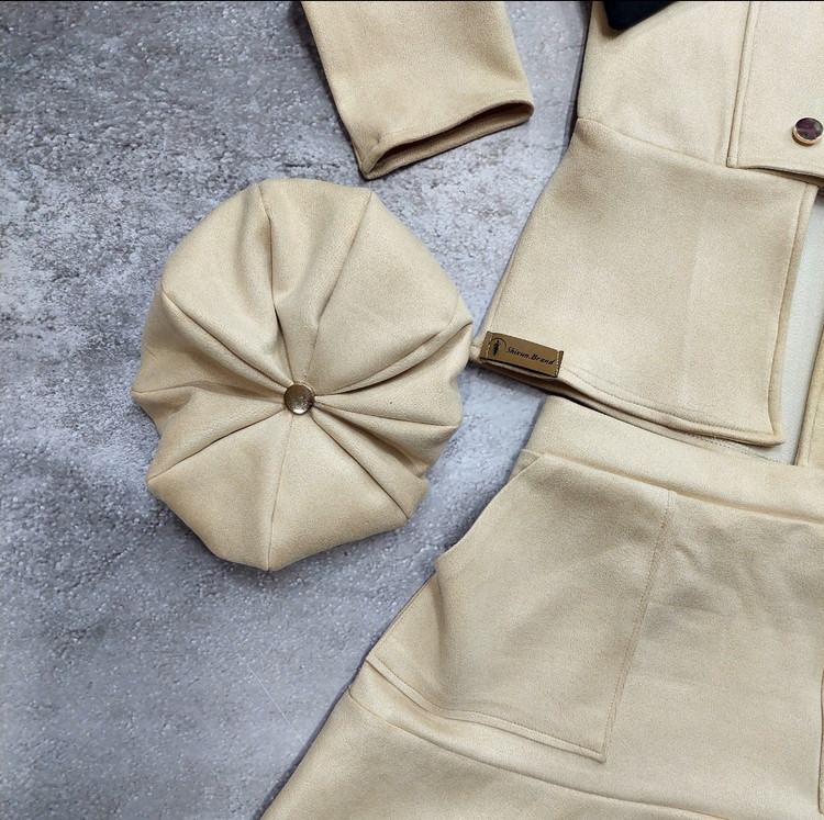 ست ۳ تکه کت دامن و کلاه دخترانه مخمل سوئیت مدل آوا برند شیکسون