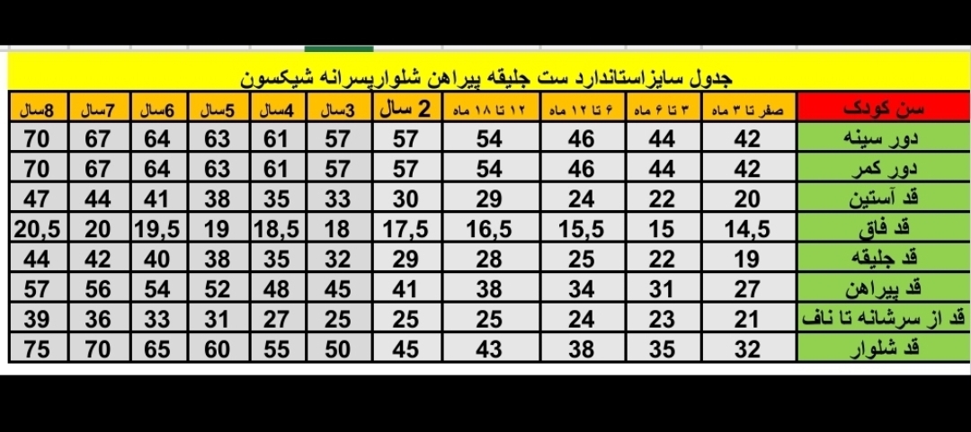 ⛔️ اندازه های کودکتون رو با جدول سایز استاندارد که براتون فرستادیم مقایسه کنید و سایز مورد نظرتون رو انتخاب کنید⛔️