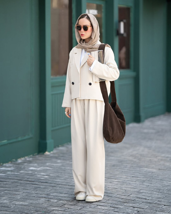 ست کت کراپ شلوار زنانه مدل دلبند برند شیکسون