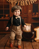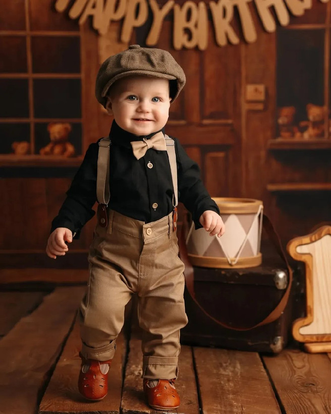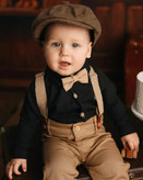 🔴 نام محصول : ست 3 تکه پیراهن شلوار ساسبندی پسرانه و پاپیون مدل شایان برند شیکسون