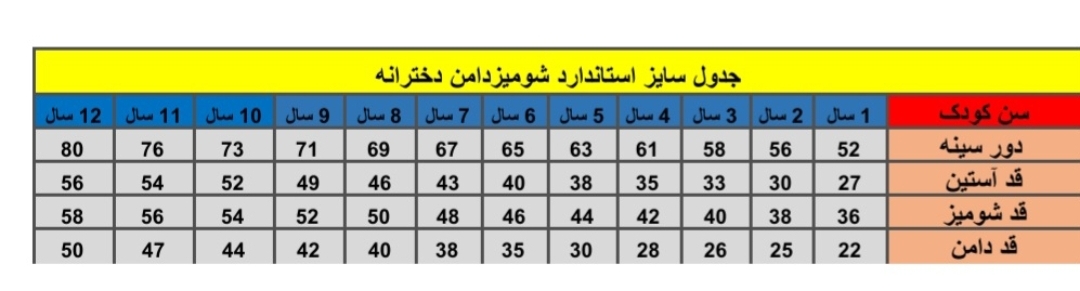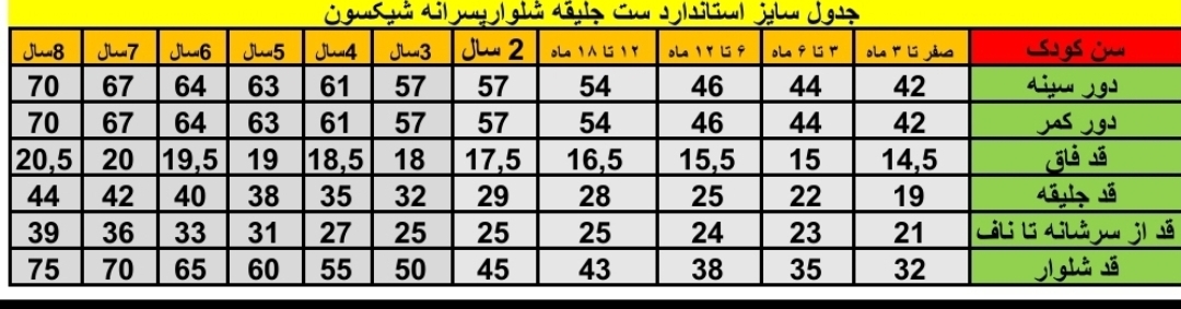 ⛔️ اندازه های کودکتون رو با جدول سایز استاندارد که براتون فرستادیم مقایسه کنید و سایز مورد نظرتون رو انتخاب کنید⛔️