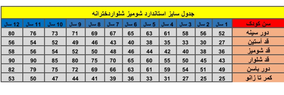 ⛔️ اندازه های کودکتون رو با جدول سایز استاندارد که براتون فرستادیم مقایسه کنید و سایز مورد نظرتون رو انتخاب کنید⛔️